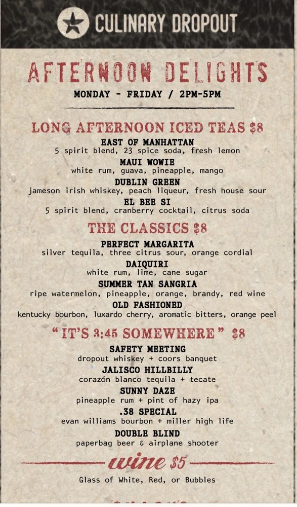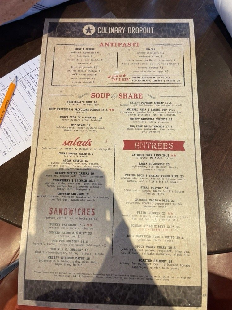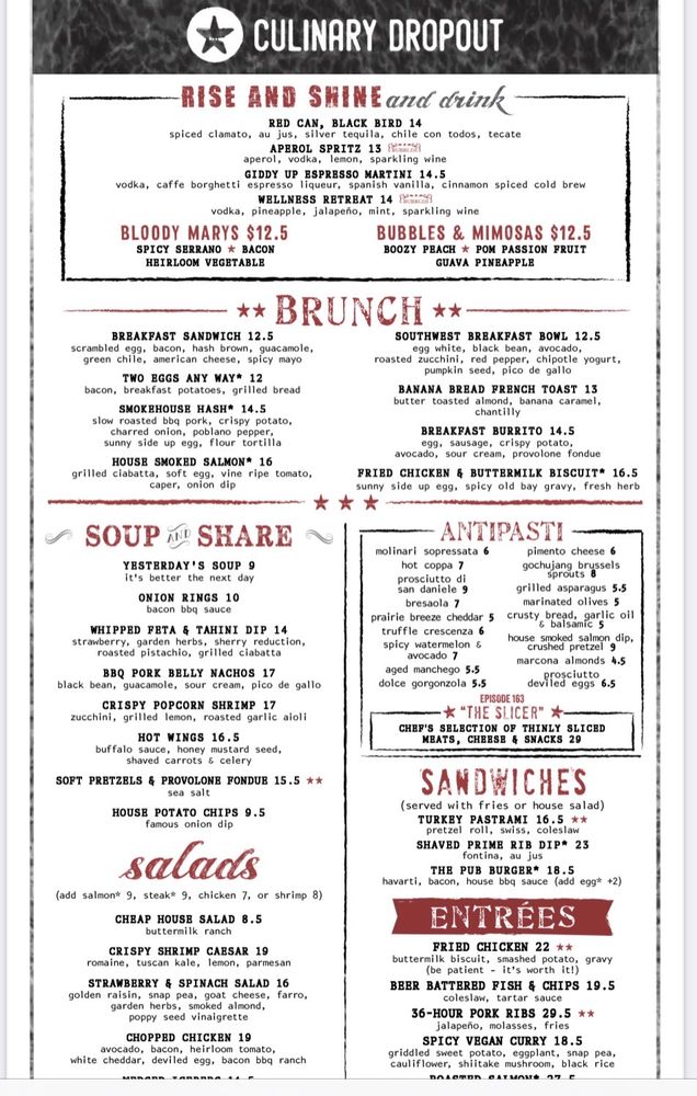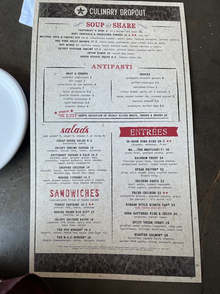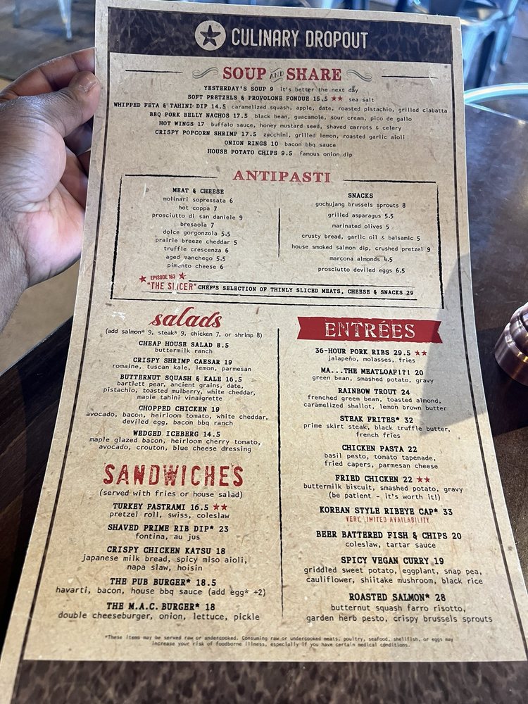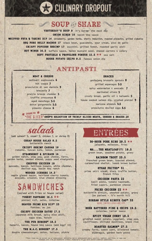 Culinary Dropout Menu (Update 2025)